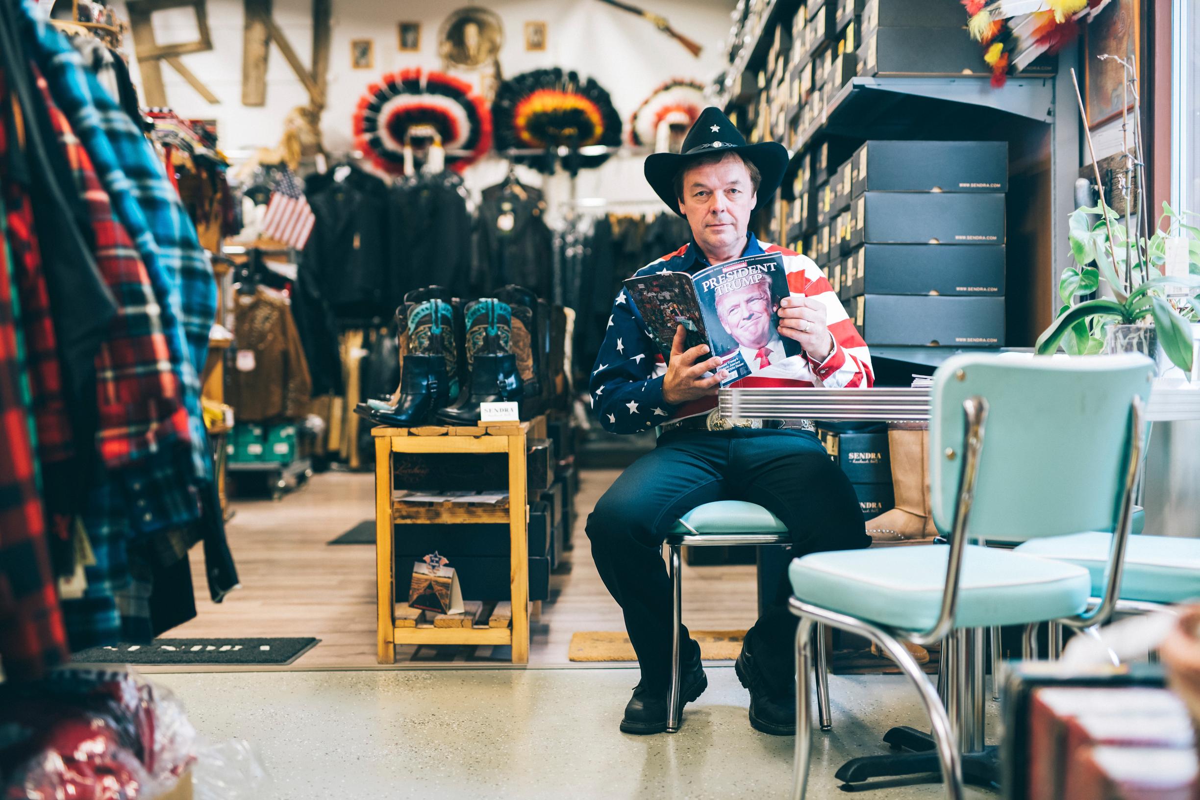 Orimattilalainen mies tunnistaa Mäen stetsonista ja paidasta. Hän ei kuitenkaan tule juttelemaan Trumpista, vaan kyselemään varaosia 1950-luvun Cadillaciinsa.