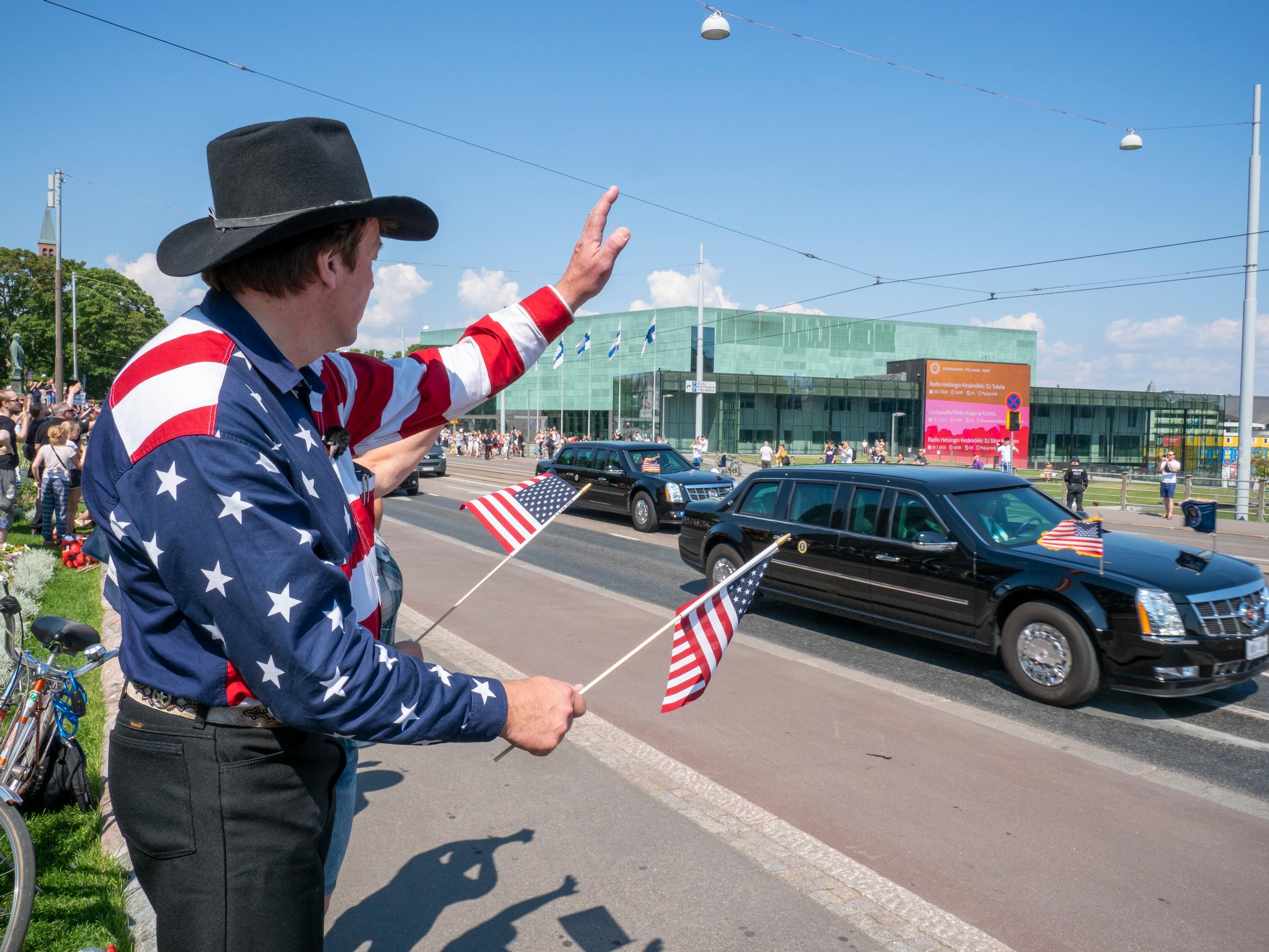 Jari Mäki ajoi seriffiautollaan Etelä-Pohjanmaan Koskenkorvalta Helsinkiin nähdäkseen edes vilauksen ihailemastaan presidentti Donald Trumpista.