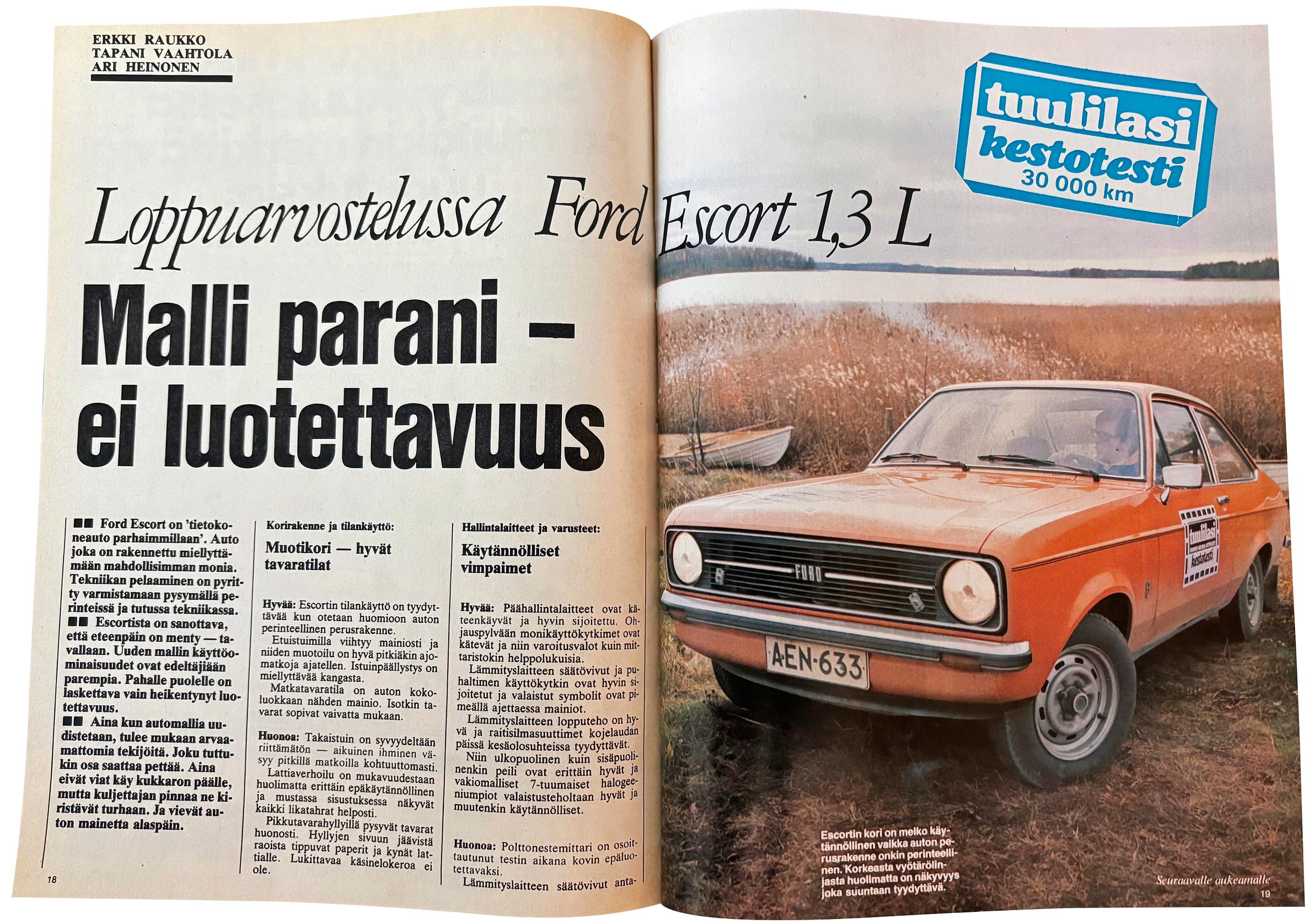 ”Ford Escort on auto, joka on rakennettu miellyttämään mahdollisimman monia. Tekniikan pelaaminen on pyritty varmistamaan pysymällä perinteissä ja tutussa tekniikassa.” Näillä sanoilla alkoi Ford Escort 1,3 L:n 30 000 kilometrin kestotestin loppuraportti joulukuun 1975 Tuulilasissa.