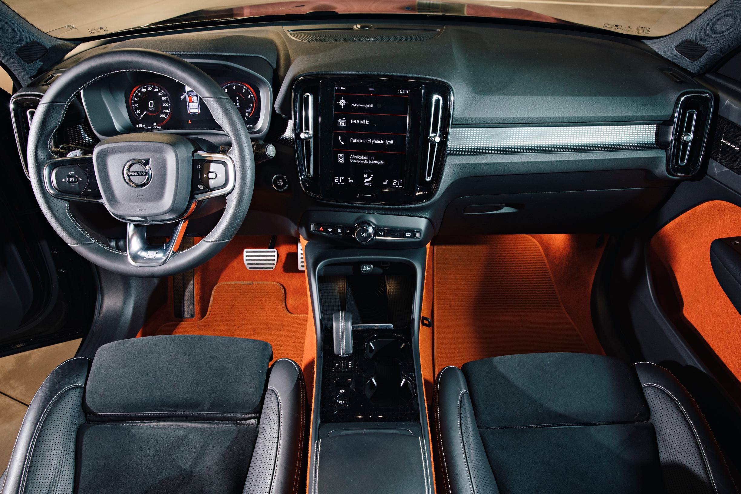 XC40:een saa lähes kaikki samat herkut kuin isompiinkin Volvoihin. Laatuvaikutelmassa XC40 jää toki jälkeen kalliimmista sisarmalleista. Kovaa muovia löytyy ohjaamosta yllättävänkin paljon, eikä tunnelmaa saa kaikin osin korotettua haluamalleen tasolle edes rahalla. Työn jälki ja viimeistely ovat onneksi ensiluokkaisia. Silti mieleen jää ajatus, että 75 000 euron hinnalla voisi saada vielä vähän enemmän.