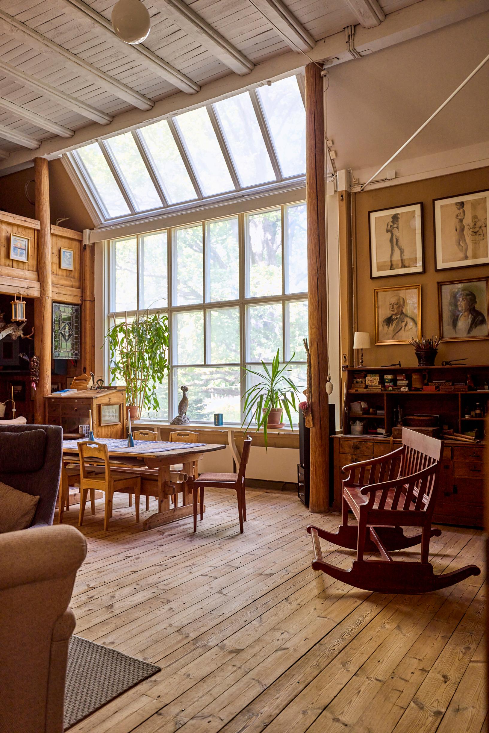 ”Aikoinaan täällä vietettiin vauhdikkaita tanssiaisia”, sanoo Kolehmainen. Hän kertoo, että Järnefelt oppi puusepäntaitoja Firenzessä ja valmisti Suvirannan ateljeen kalusteet itse.