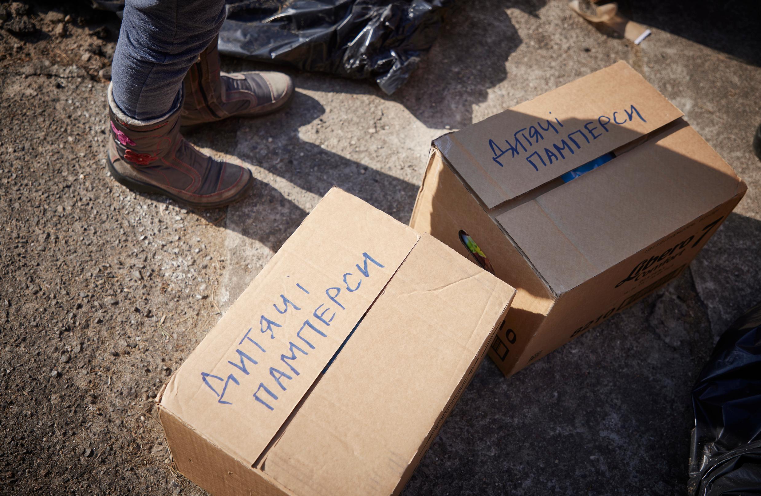Vapaaehtoiset jakavat ruokaa, juomaa, vaippoja ja hygieniatuotteita.