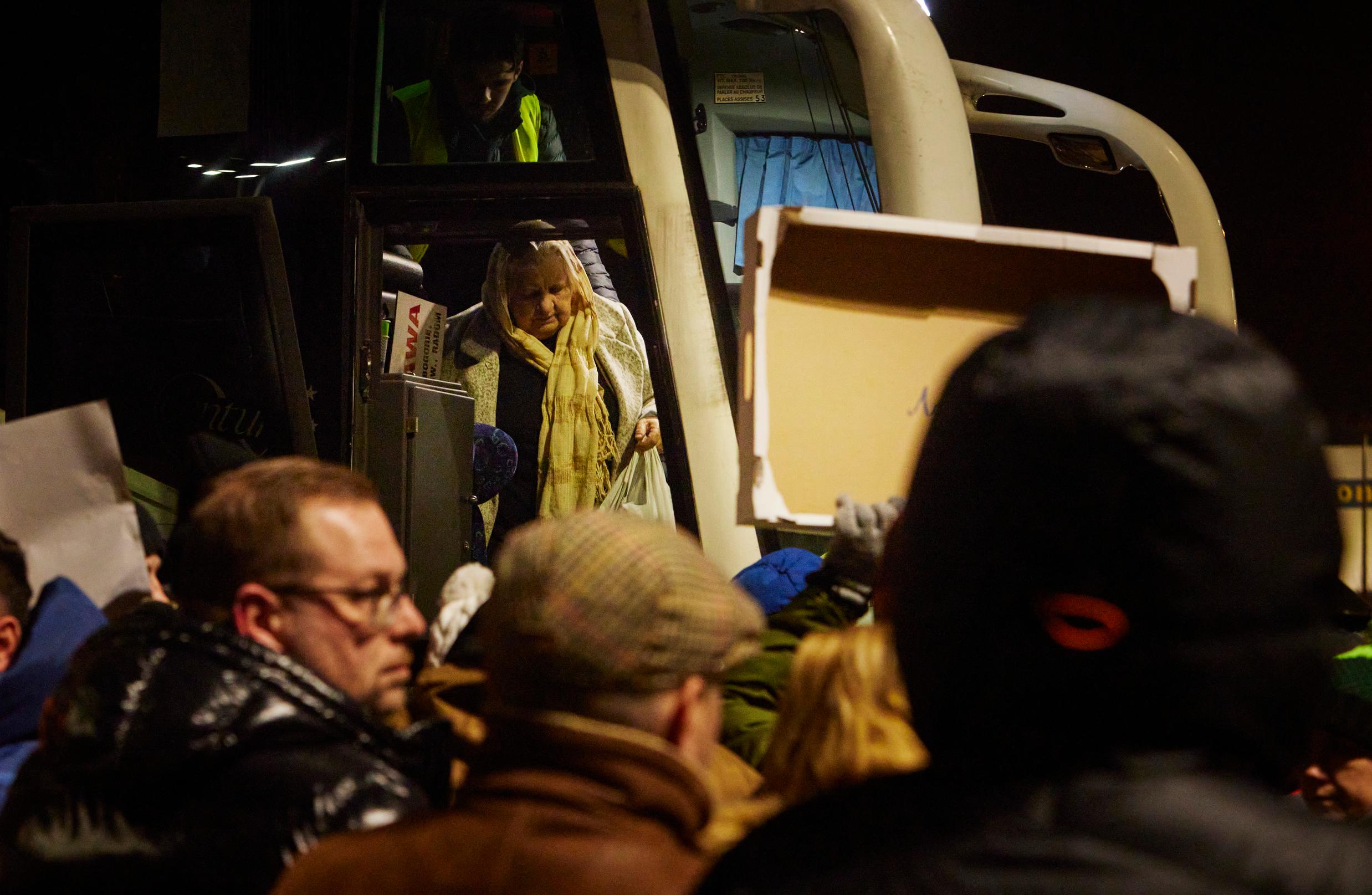 Kaikki toivottavat toisilleen onnea matkaan. Vapaaehtoinen tulee tarjoamaan lämmintä soppaa, ja toinen työntää pillimehua ja karkkia lasten kouraan. Julia kiittelee puolalaisten vapaaehtoisten sydämellisyyttä.