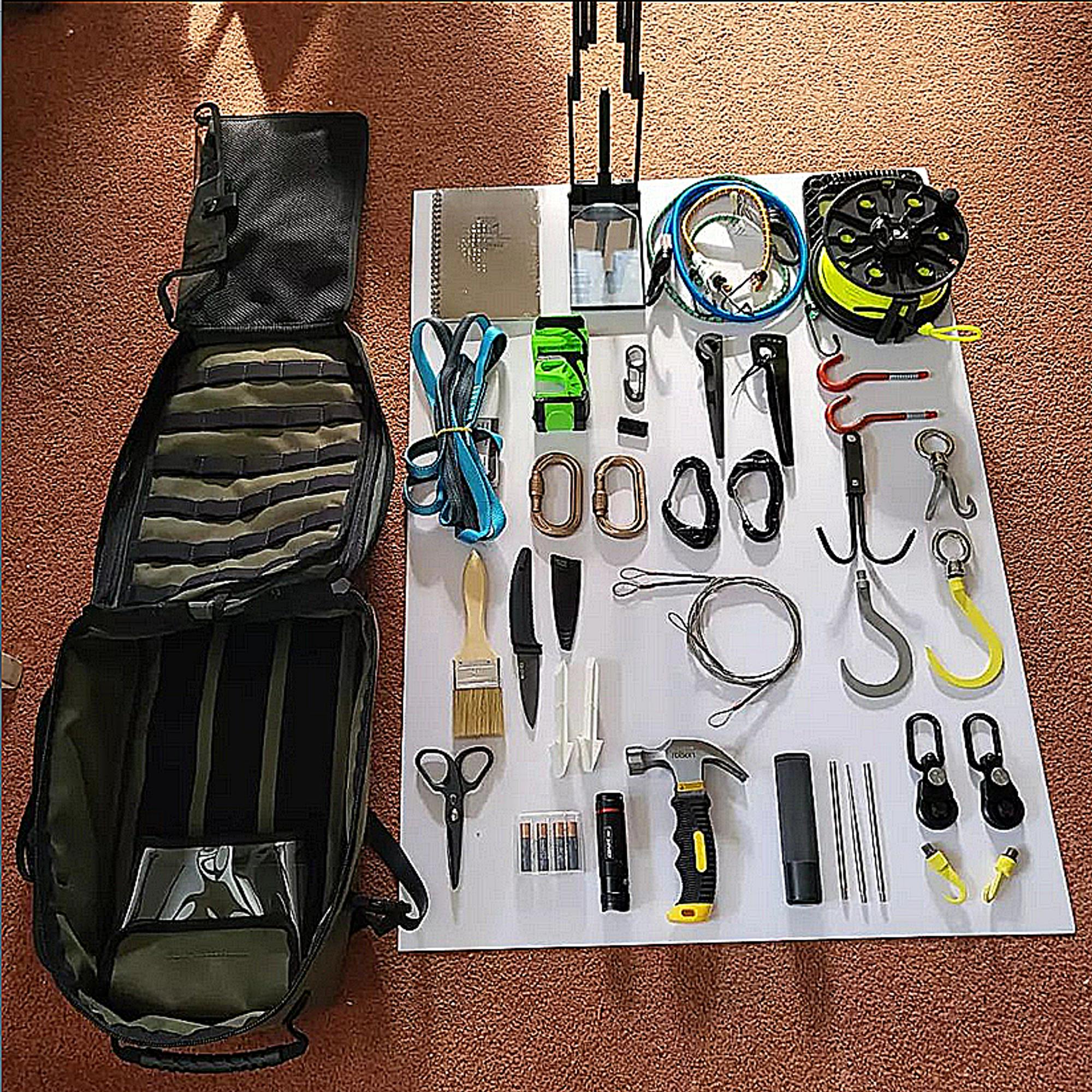 Pomminpurkajan työkalupakista löytyy välineitä koukuista pihteihin, vaijereihin ja merkkausköysiin. Apuna EOD-ryhmillä on räjähteiden etsimiseen koulutettuja koiria, jotka haistavat ja merkkaavat löytämänsä räjähteet.