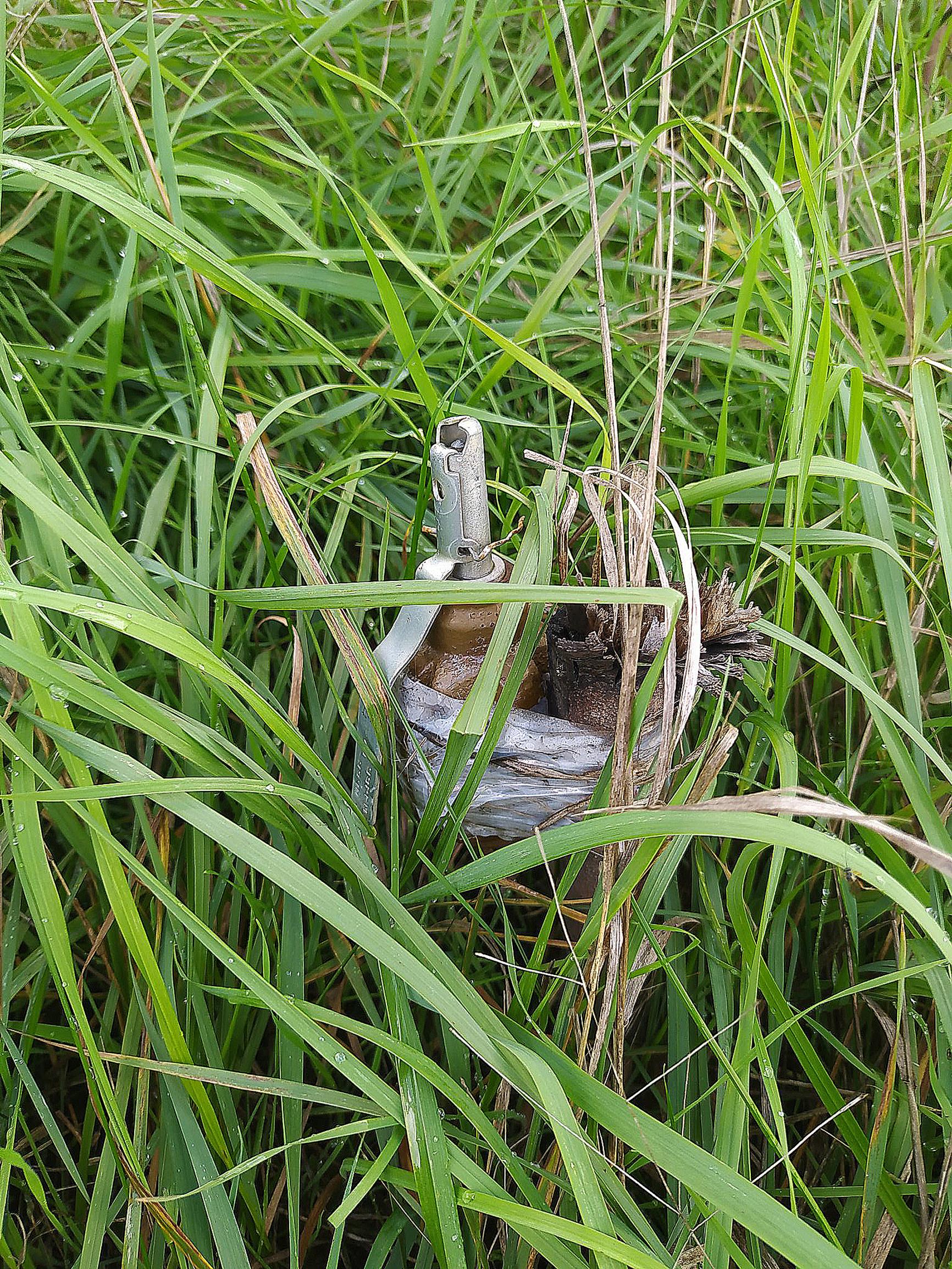 – Venäläiset suosivat niitä. Toinen kranaatti viritetään räjähdyskuntoon poistamalla siitä varmistussokka. Se kytketään rautalangalla toiseen, vielä varmistettuun kranaattiin. Jos etsijä löytää varmistetun kranaatin ja alkaa korjata sitä talteen, mutta ei huomaa rautalankaa, se vapauttaa liikutettaessa toisen kranaatin räjäytyskahvan, jolloin voi käydä huonosti.