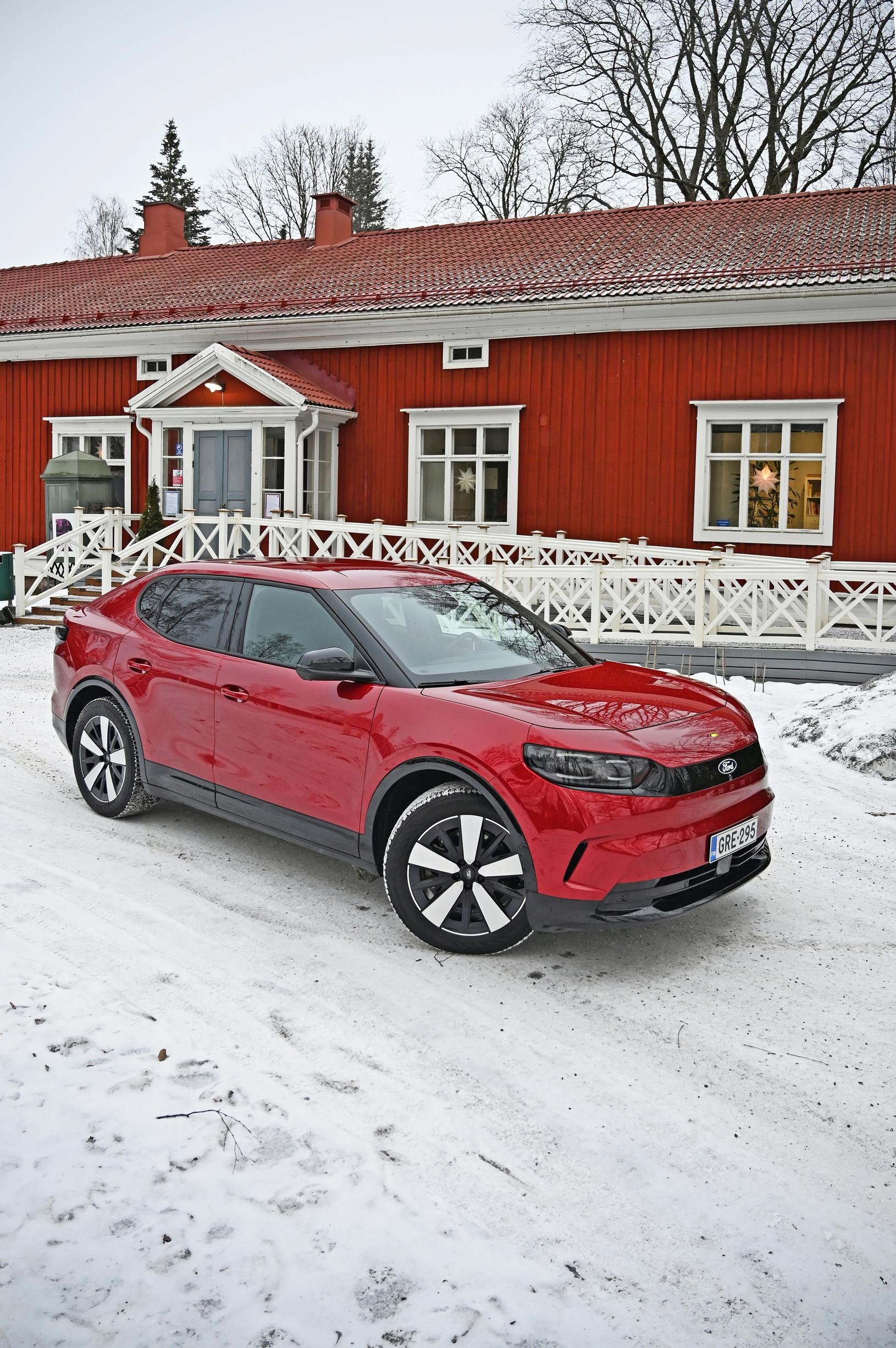 Lähtökohdista huolimatta autossa on kuitenkin nähtävissä muutama klassiselle Caprillekin tuttu piirre, kuten takasivulasin U-muoto, ajovalojen välinen musta paneeli ja etukannen pokkaukset. Nämä huomatakseen täytyy toki tietää tarkkaan, mihin kyseisiä pieniä muotoiluvinkkejä verrata. Sukulaismalli ID.5:een verrattuna Caprin tuulilasi on taaempana ja alusta parisen senttiä matalampi kuin Volkswagenissa. Capri on myös ulkomitoiltaan hieman ID.5:sta kookkaampi. Lopputulos on Explorerin isoveli, jonka ulkomuoto on viiteryhmässään ihan mukiinmenevä, muttei lopulta mitään sen enempää. Se on hieman sääli, sillä Fordilla olisi Caprissa ollut tilaisuus luoda sähköajan sensaatio esimerkiksi voitokkaan Renault R5:n tapaan. Tuo tilaisuus on nyt hukattu tuotantopaineiden ristiaallokossa.