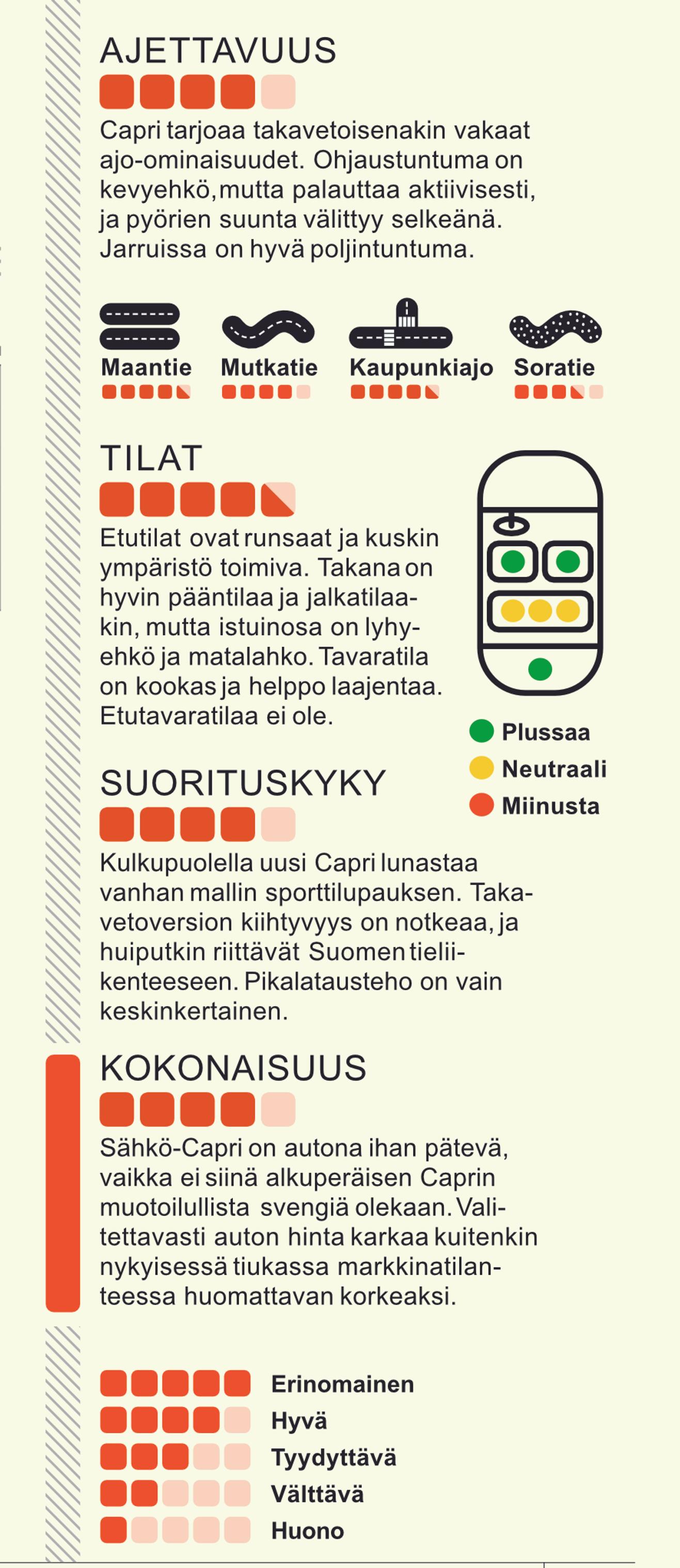 Kuulun siihen ikäryhmään, joka muistaa alkuperäisen Caprin hyvin. Caprin comeback on siksi sykähdyttävä tapaus, mutta valitettavasti uutuus ei herätä samanlaisia tunteita kuin esikuvansa. Pelkästään perimällä legendan nimen ei vielä sellaisen kaltaiseksi muutu.