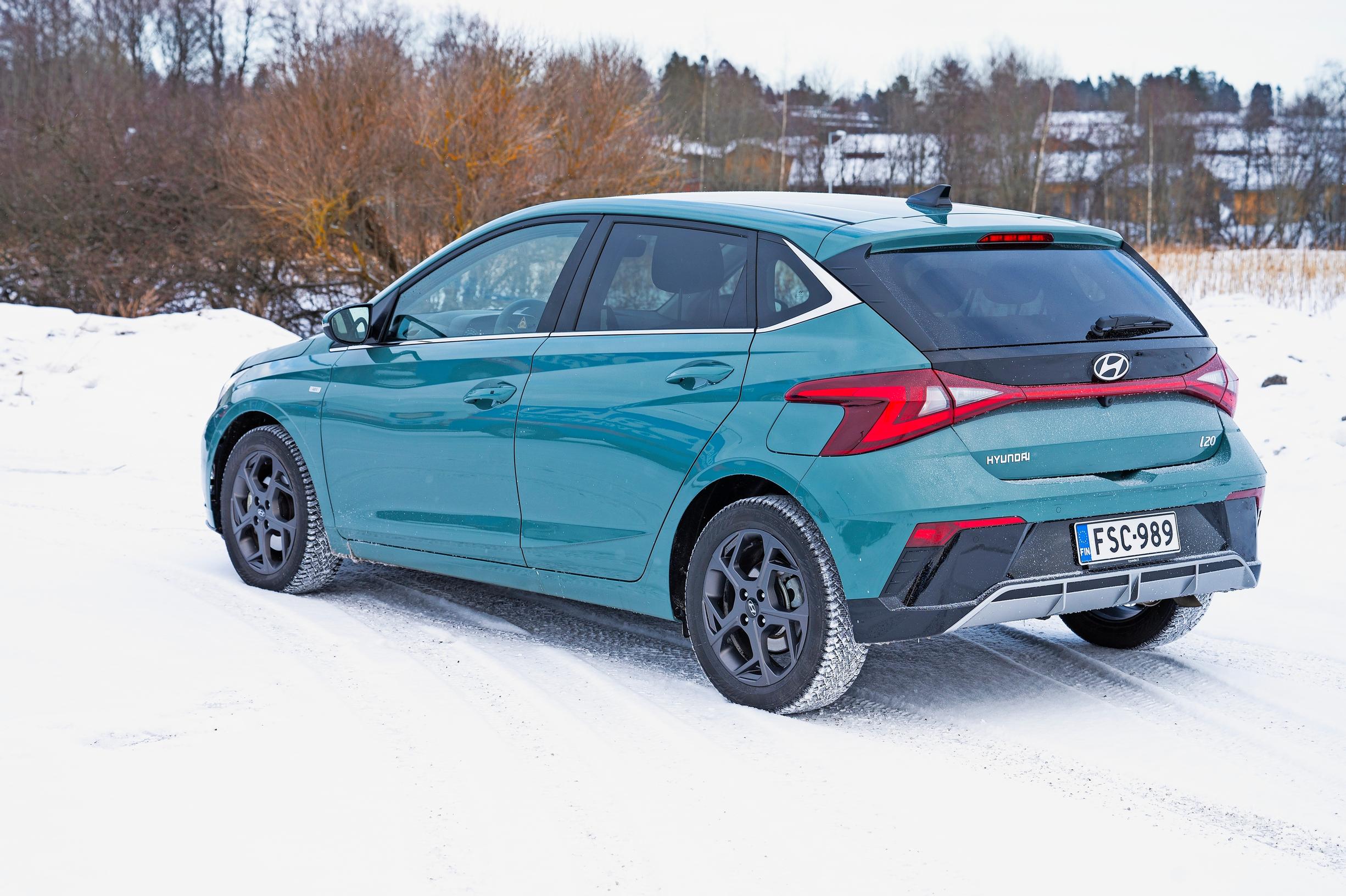 i20-malliston hinnat alkavat 19 390 eurosta. Tuolla summalla saa 84-heppaisen koneen ja viisipykäläisen manuaaliaskin. Meitä lykästi, sillä ajoimme niin sanotun ylähyllyn mallin. Sen voimanlähde on litrainen turbokolmonen, jota avittaa 48 voltin kevythybriditekniikka. Voimaa on käytössä 120 hevosvoimaa, ja se siirretään tiehen seitsenportaisen automaattilaatikon kautta. Tämä versio on vakiovarusteisena 26 990 euron arvoinen. Meidän automme hintalapussa luki 29 972 euroa. Eihän tuo enää mikään erikoistarjous ole, mutta kohtuullinen summa kuitenkin.