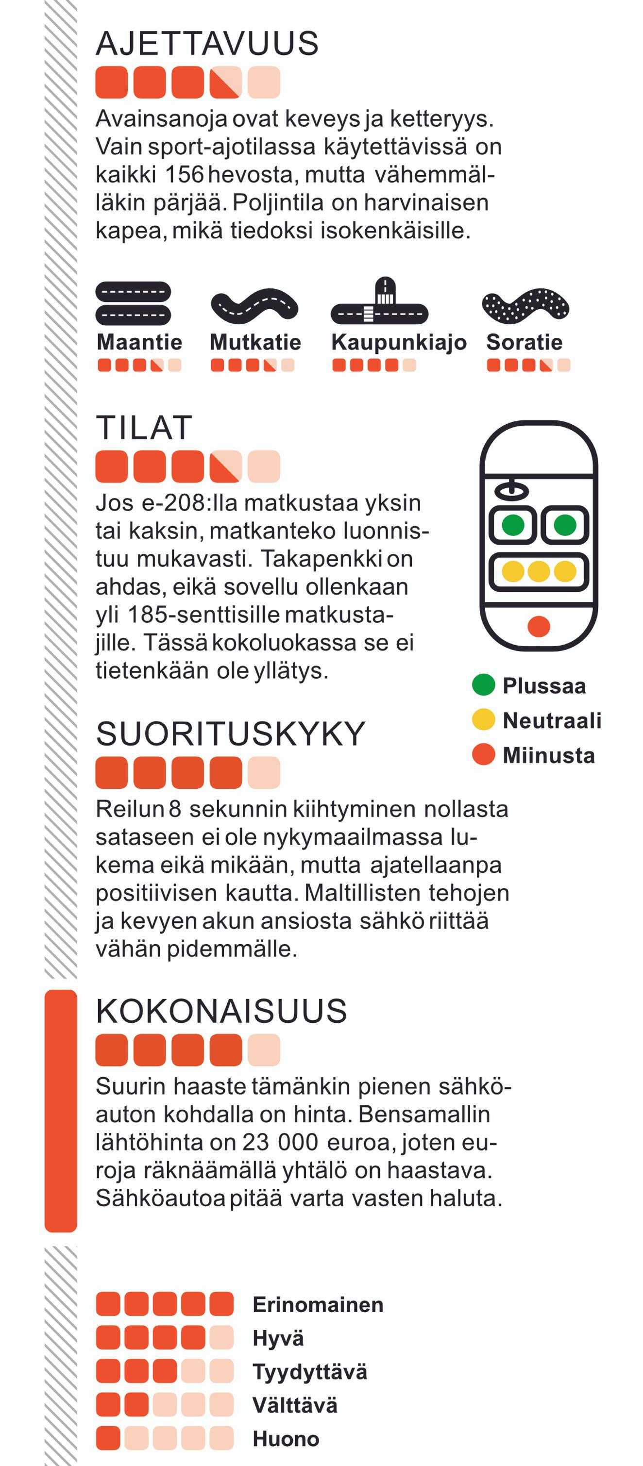 Olisi loogista ajatella, että juuri e-208:n tapaiset pikkuautot olisivat kaikista järkevimpiä sähköautoja tulevaisuudessa. Kaupunkikeskustat kärsivät yhä enemmän ilmansaasteista ja ahtaista kaduista. Samaan aikaan juuri nämä keskustat toimivat pienten sähköautojen luonnollisena ympäristönä, jossa lataamiseen ei ole jatkuvaa tarvetta, kun matkat ovat lyhyitä. Haaste on kuitenkin suuri. Maastureissa ja suurissa perhesedaneissa on paljon enemmän katetta valmistajille, ja ne ovat suurimpana kiinnostuksen kohteena myös kuluttajien puolelta.