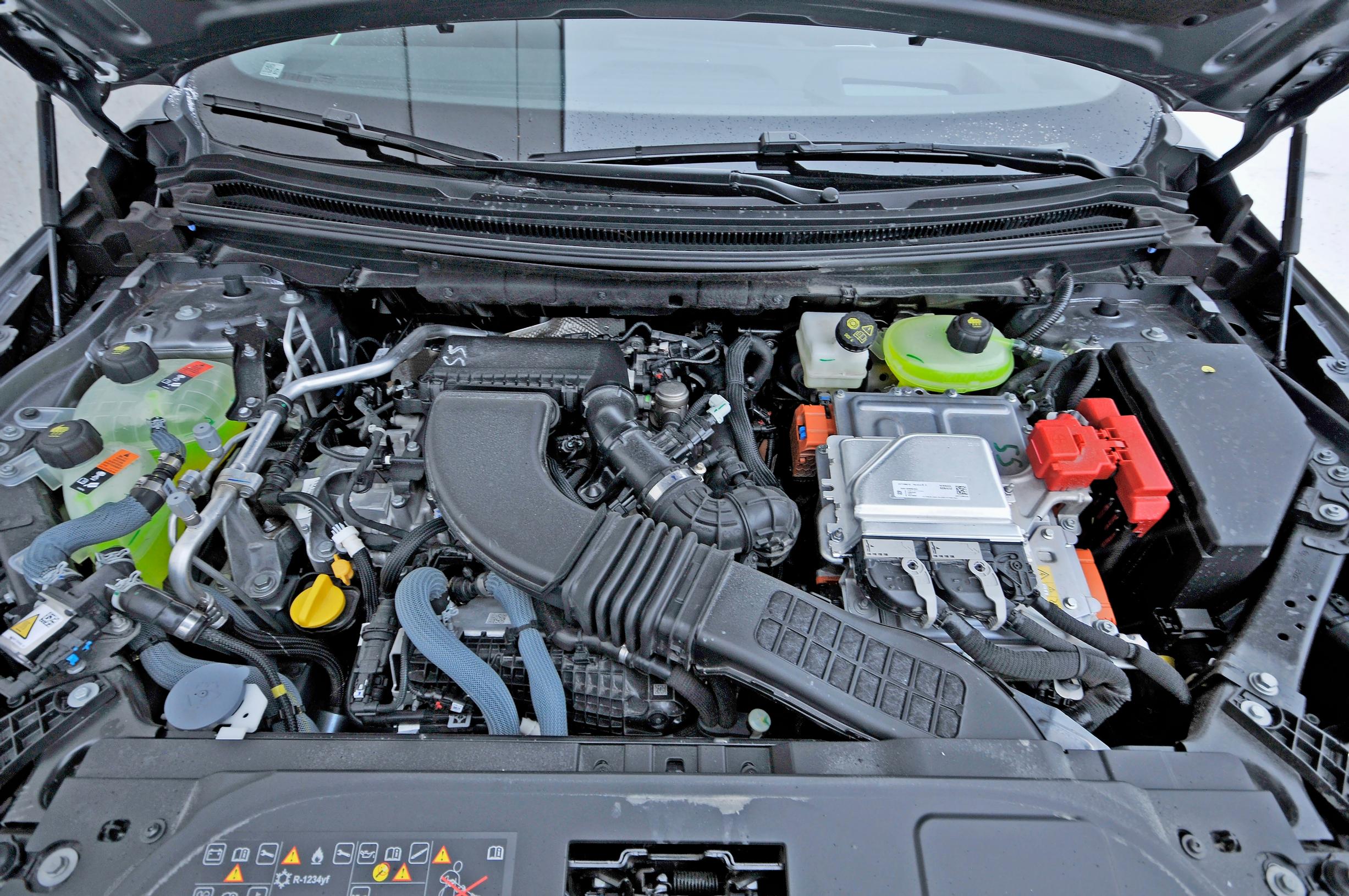 Voimanlähde on auton kokoluokka huomioon ottaen yllättävän pieni, 1,2-litrainen ja kolmemukinen täysalumiinipuksutin. Polttomoottorissa on suorasuihkutus, neliventtiilitekniikka, muuttuvageometrinen turboahdin, elinikäinen jakoketju (mitä se sitten käytännössä tarkoittaakaan), sähkötoiminen vesipumppu ja muuttuvatilavuuksinen öljypumppu. Kokonaisuudessa on siis paljon nykyaikaista tekniikkaa, jonka keskeinen tarkoitus on kulutuksen vähentäminen.