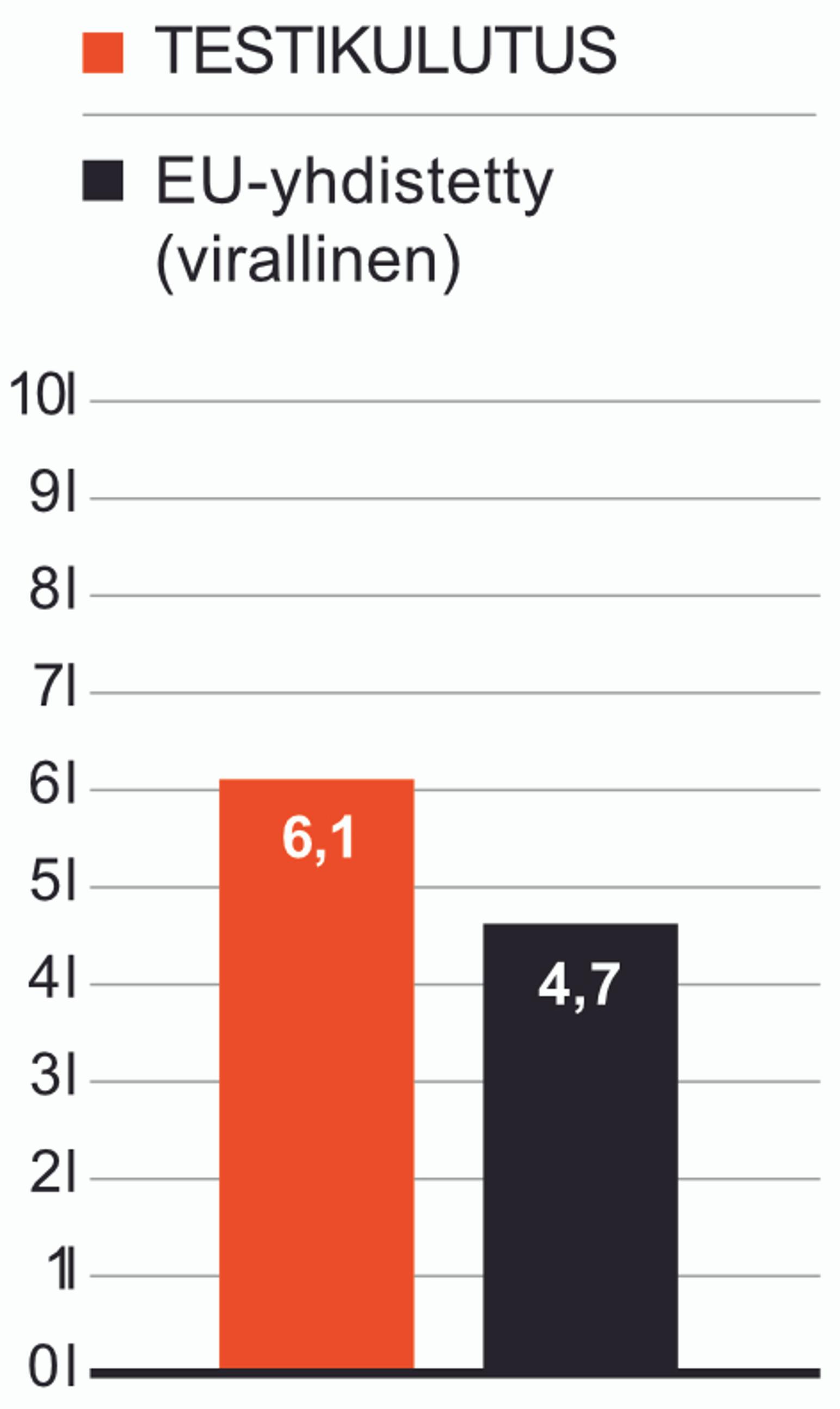 Yhdistetty WLTP-kulutus on auton kokoluokkaan nähden kohtalaisen alhainen, eli alle viisi litraa sadalla. Varsinkin talvella nelosella alkaviin lukemiin on kuitenkin lähes mahdotonta päästä, mutta siististi ajamalla vajaan kuuden litran kulutus on mahdollinen. Testimme keskikulutus oli nyt 6,1 litraa sadalla, mikä kesäkeleillä laskee varovasti arvioiden puolisen litraa.