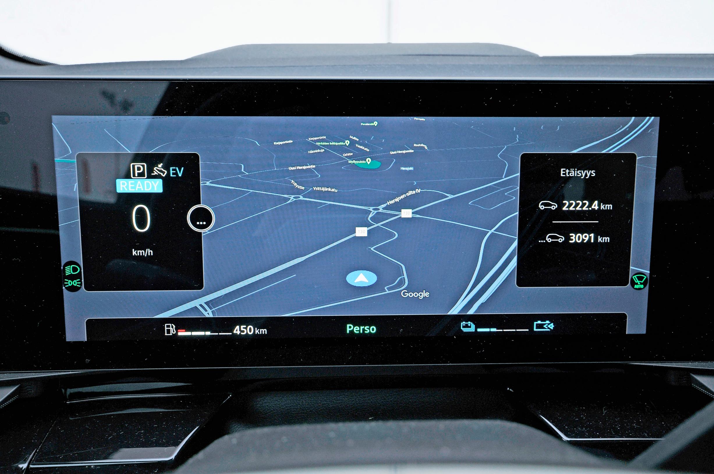 Hybridi-Espacen ajoakun energiasisältö on tyyliin sopien hyvin pieni, vain 2 kilowattituntia. Liikkeelle E-Tech-hybridi lähtee aina sähköllä, ja kaupungissa voidaan liikkua jopa 80 prosenttia ajasta sähköllä, jolloin bensiiniä palaa entistä vähemmän. Kulutus on pienentynyt edellisestä Espacesta peräti 35 prosentilla.