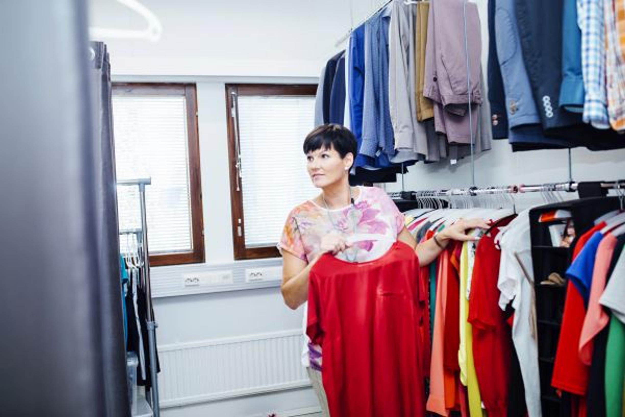 Ylen alueellisten tv-uutisten ankkureilla on yhteinen pukuhuone. Salla valitsee rekkitangoltaan päivän juontovaatteet.
