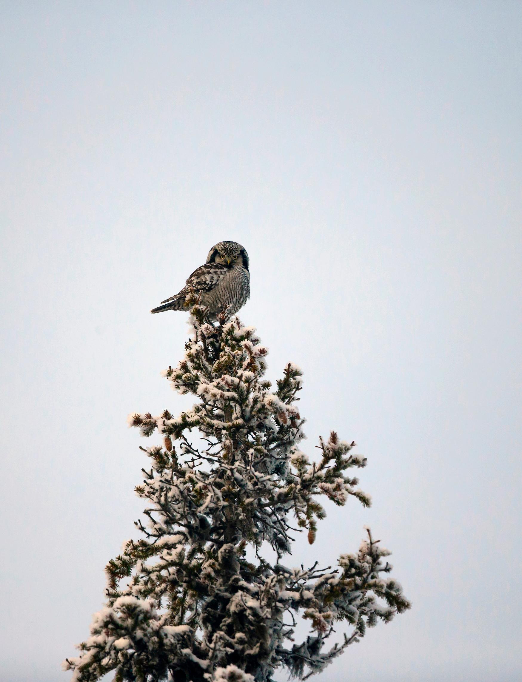 Metsässä Sipilän kynä oikuttelee, kun hän yrittää kirjata ylös mittaustikun lukeman, 75 senttiä. Samassa huomaan kuusenlatvasta liikettä. Hiiripöllö tarkkailee meitä päätään elegantisti kallistellen.