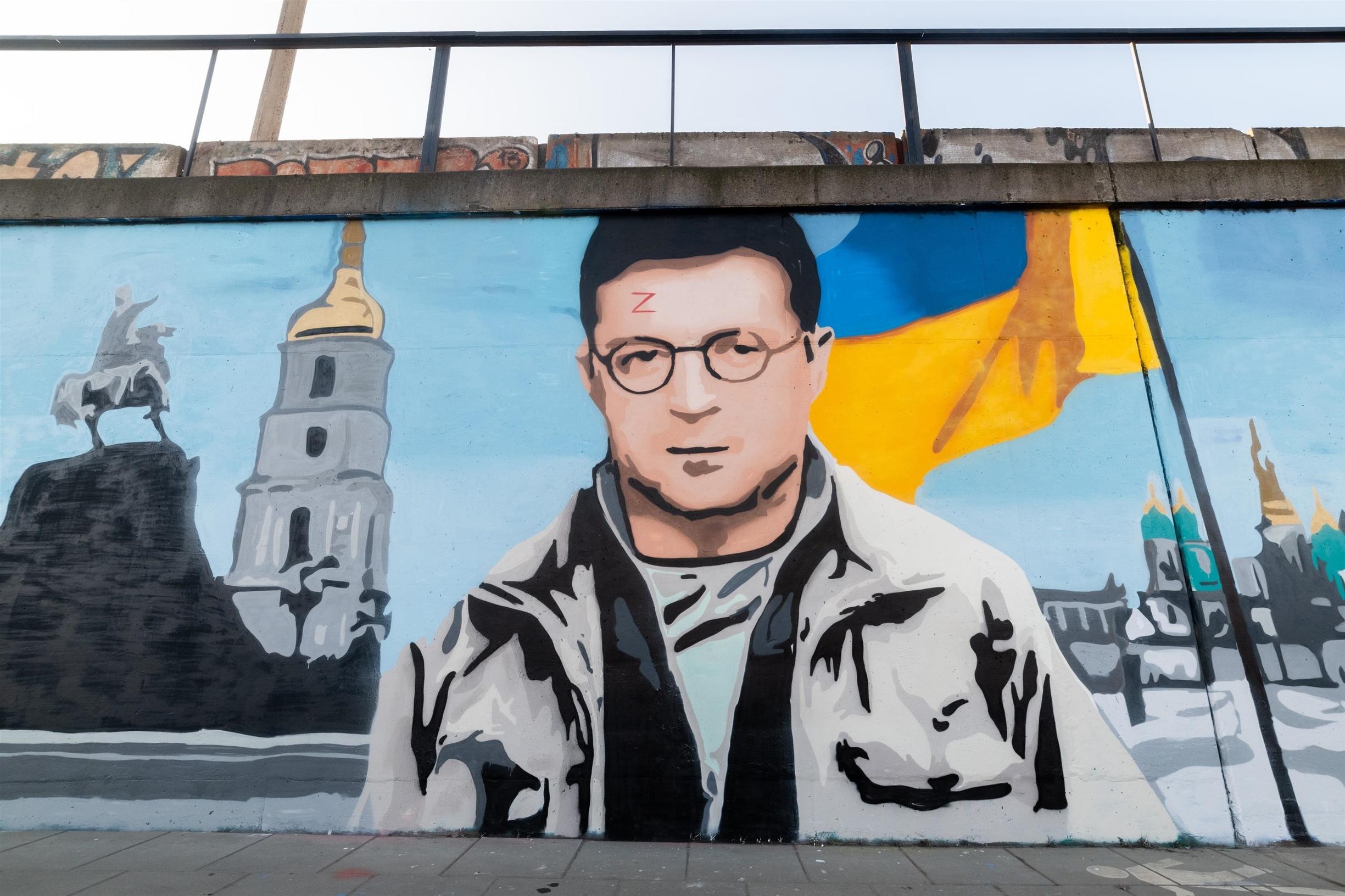 Puolalaisen graffititaiteilija Kawun näkemys Ukrainan presidentti Volodymyr Zelenskyistä Harry Potterin hahmossa. Kuva: EastNews / Backgrid / AOP.