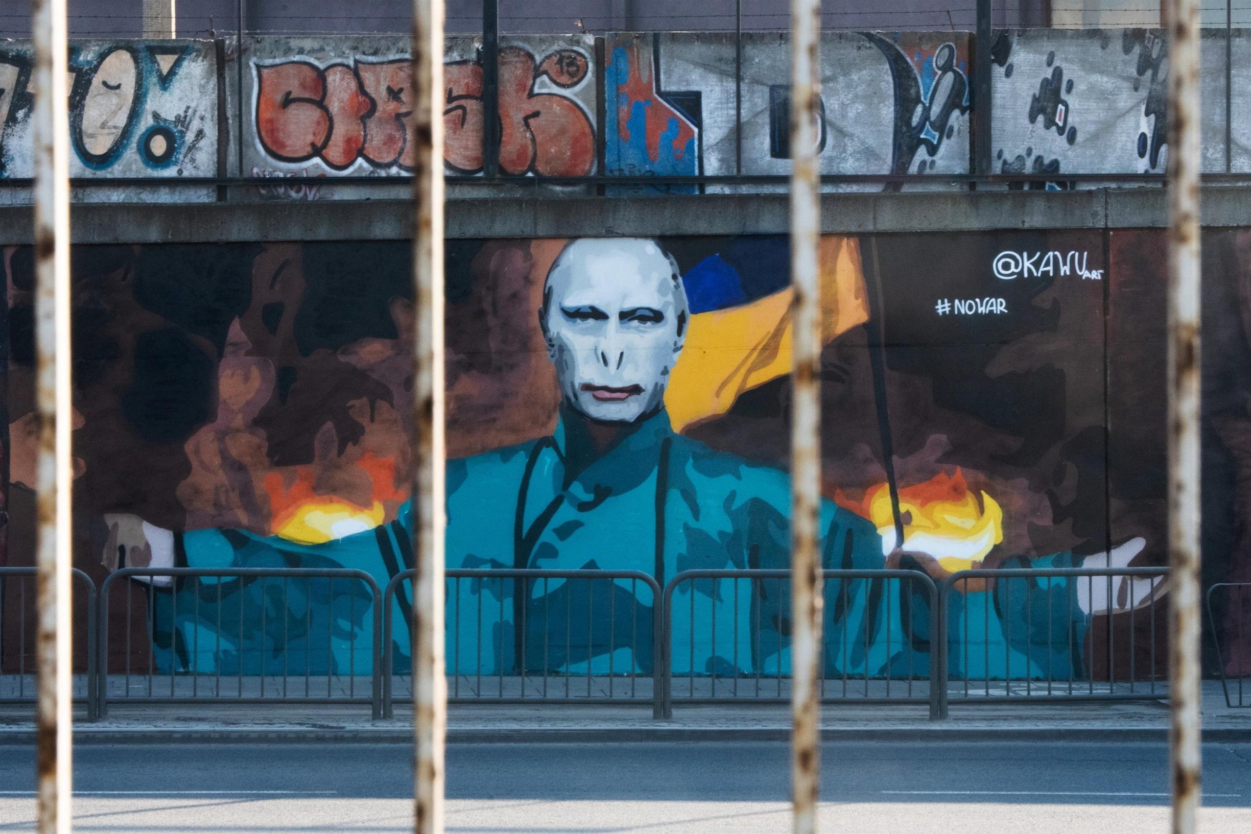 Artikkelin aloituskuvassa Puolan Poznaniin tehty seinämaalaus Vladimir Putinista Harry Potter -elokuvien Voldemortina. Maalauksen on tehnyt paikallinen graffititaiteilija Kawu. Kuva: EastNews / Backgridn / All Over Press.