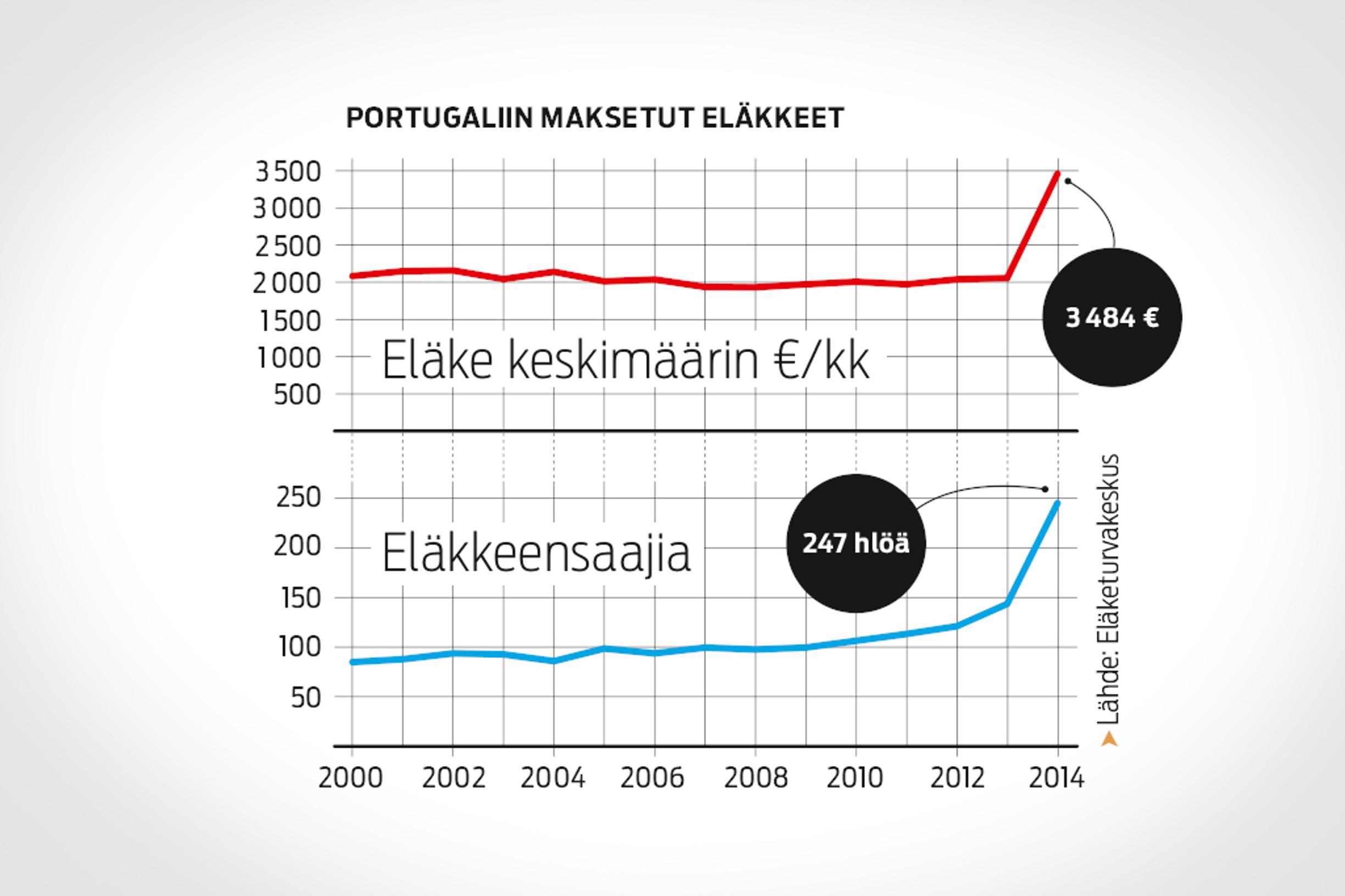 Portugali ei ole verottanut maahan muuttavien ulkomailta maksettavia eläkkeitä vuodesta 2013 lähtien. Portugaliin muuttava suomalaiseläkeläinen voi saada täyden verovapauden yksityisen sektorin palveluksessa ansaittuun eläkkeeseen. Valtion tai kunnan palveluksessa ansaitut eläkkeet verotetaan Suomessa.
