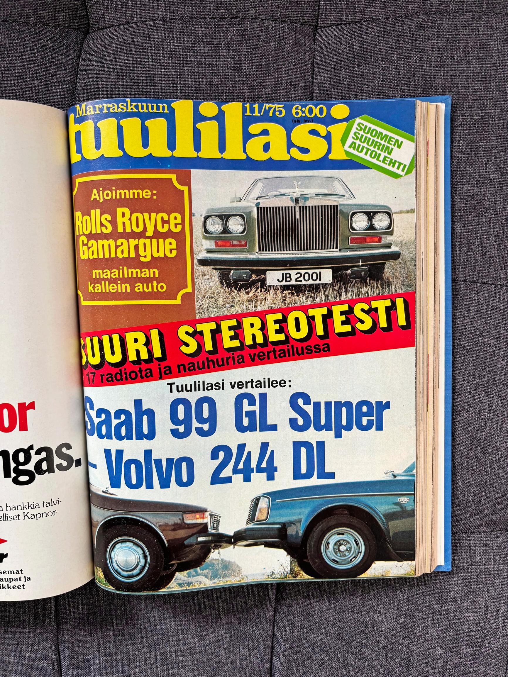 Marraskuun 1975 erikoisartikkelina oli maailman kalleimman auton Rolls Royce Gamarguen koeajo Lontoossa. Auton hinta olisi Suomessa ollut yli 600 000 markkaa, mikäli maksukykyisiä ja kärsivällisiä asiakkaita olisi ollut. Autoja valmistui tehtaalta yksi viikossa, ja toimitusajaksi arvioitiin kolme vuotta. Liukuhihnasta ei Rolls Roycen tehtaalla ollut tietoakaan: kaikki muutkin tuotannossa olleet automallit – Silver Shadow, Corniche ja Phantom – tehtiin käsityönä alusta loppuun.