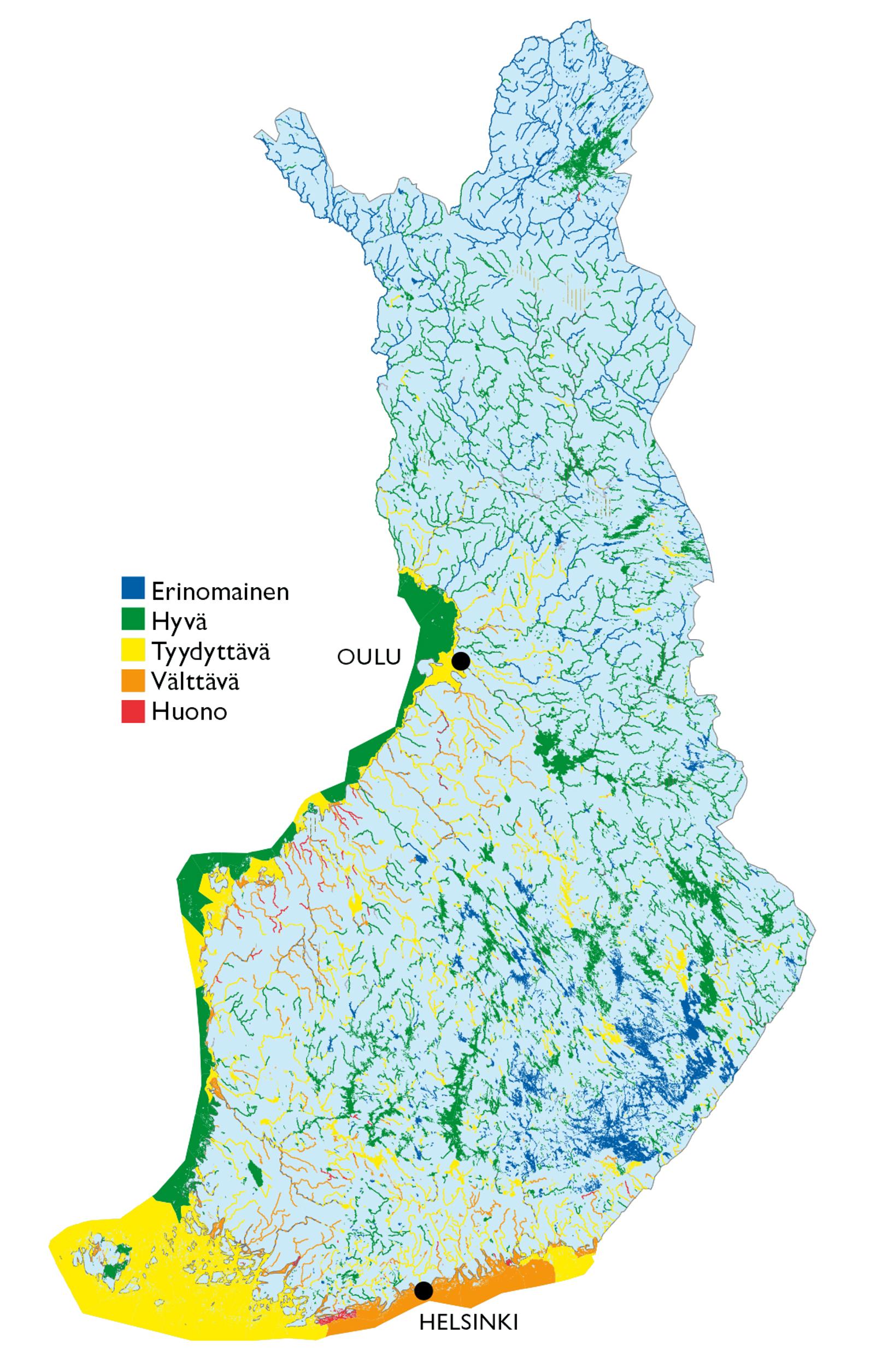 Lähde: Pintavesien ekologinen luokittelu 2015. SYKE, ELY-keskukset ja RKTL. Kartta: Maanmittauslaitos lupa nro 7/MML/12.