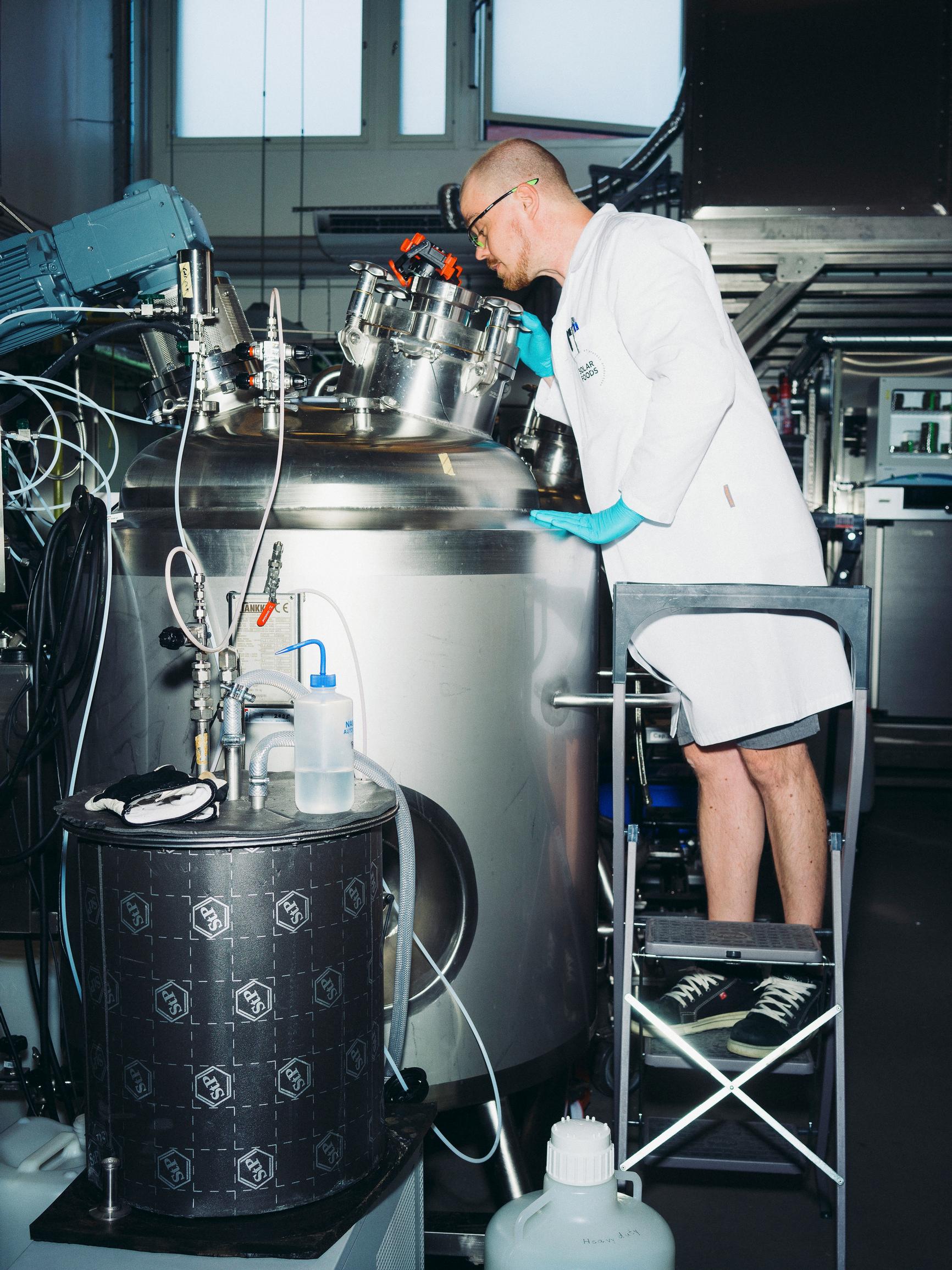 ”Siellä on 20 kuution fermentori, joka tuottaa yhtä paljon proteiinia kuin 200 lehmää”, Pasi Vainikka sanoo.