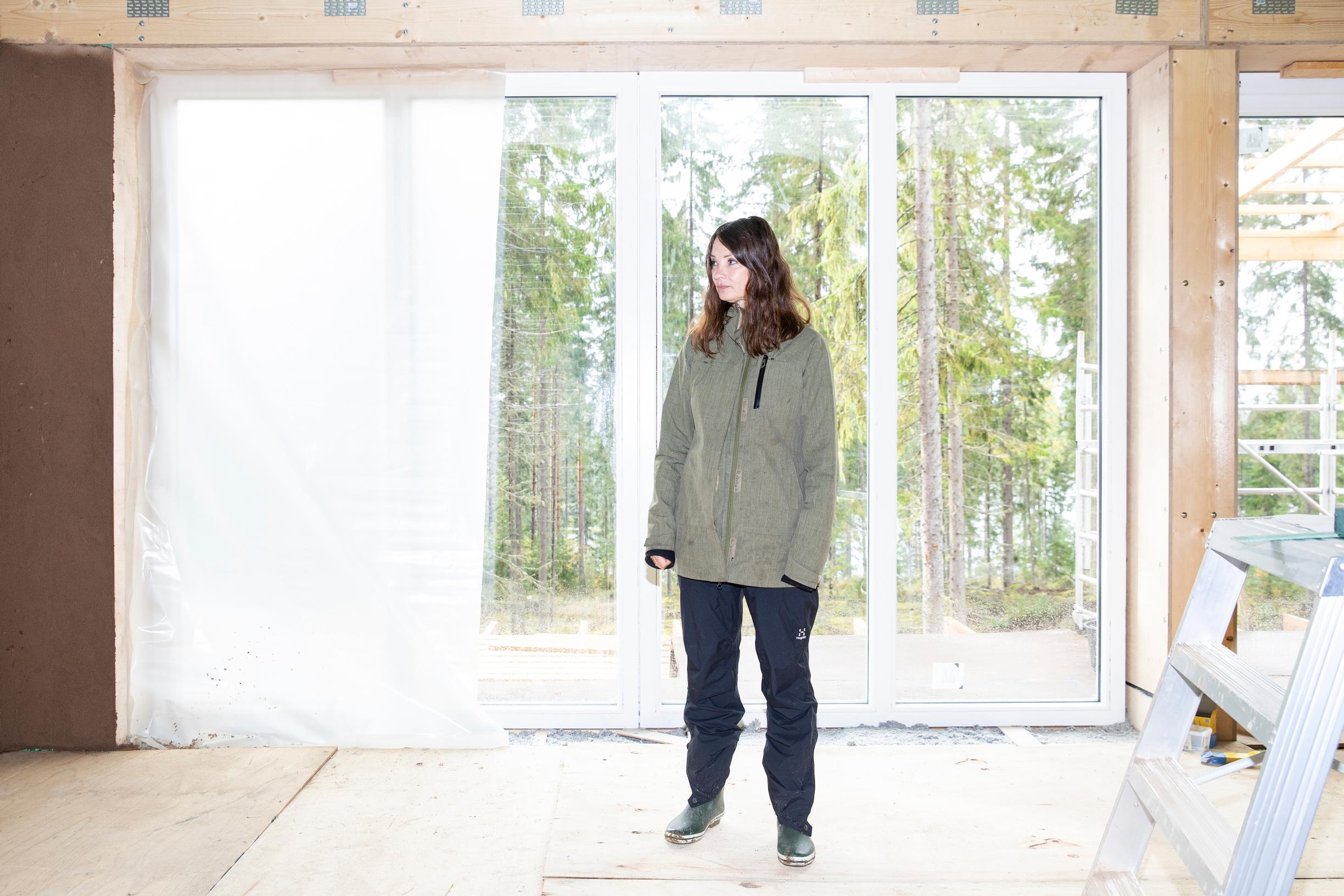 ”Ei se valmis ole, mutta muuttokelpoinen minulle. En haluakaan, että se on valmis. Haluan fiilistellä keskeneräisessä talossa, jossa ei ole vielä sisäseiniä. Nyt vain haaveilen aamuista, kun näen suoraan sängystä metsän.”