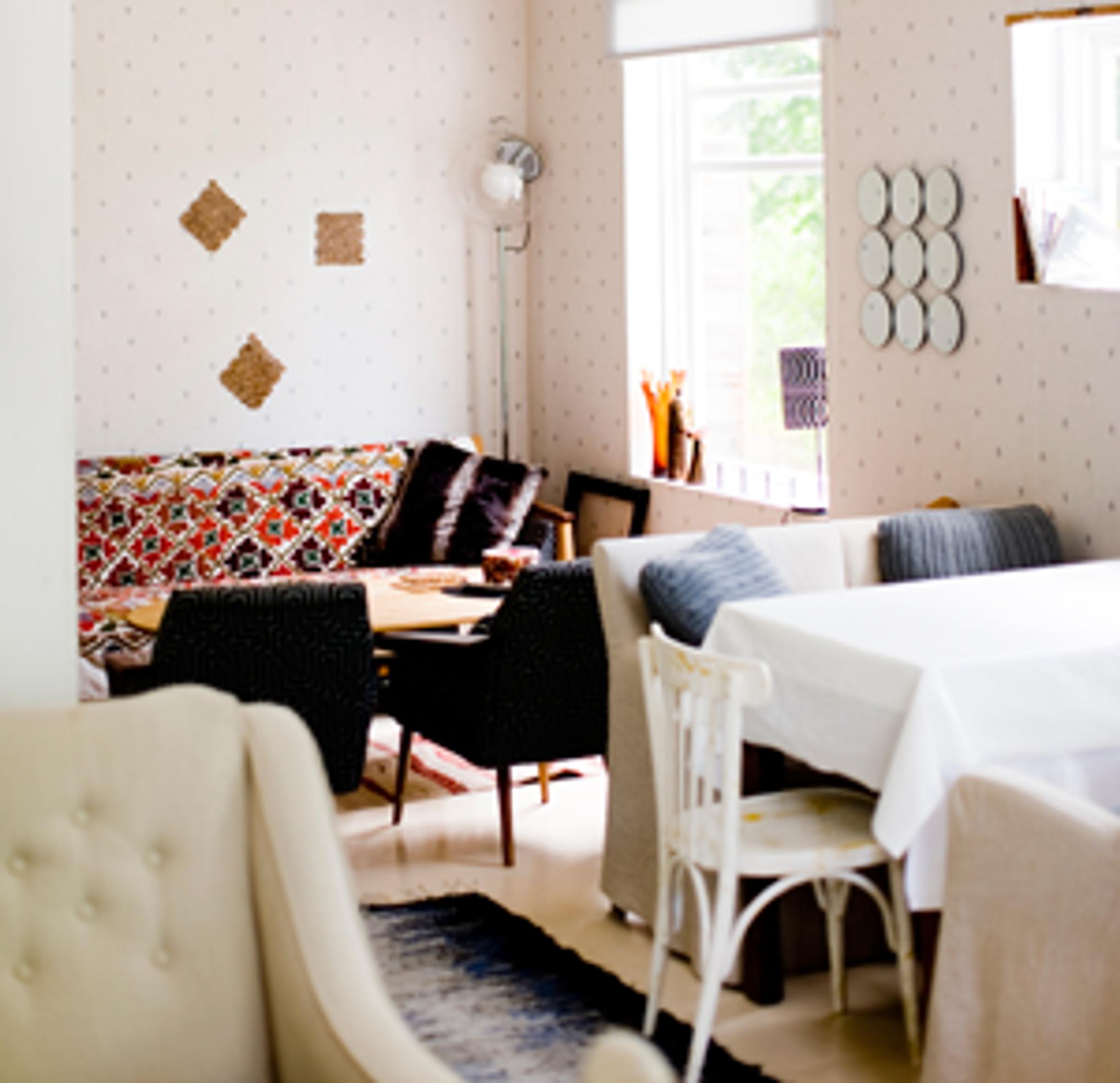 Valoisa ja tilava kahvila sijaitsee Vanalinnan hotellin yhteydessä.