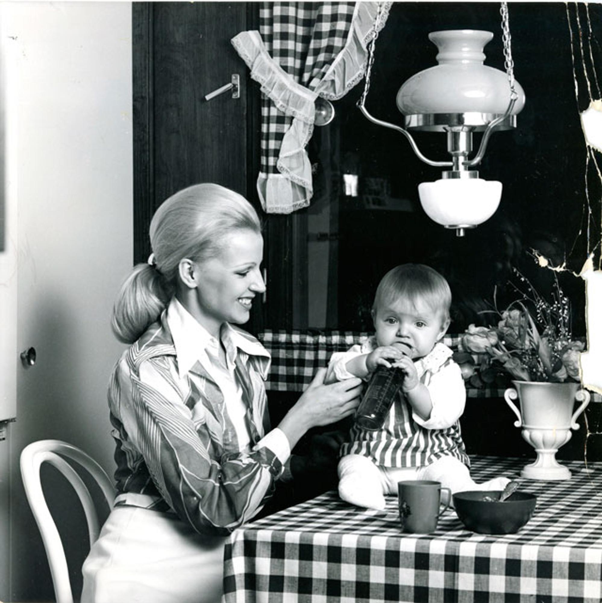 Virpi Miettisen ainokainen, tytär Nina syntyi vuonna 1974. Äiti ja tytär kuvattiin Avun kansijuttuun tammikuussa 1975.