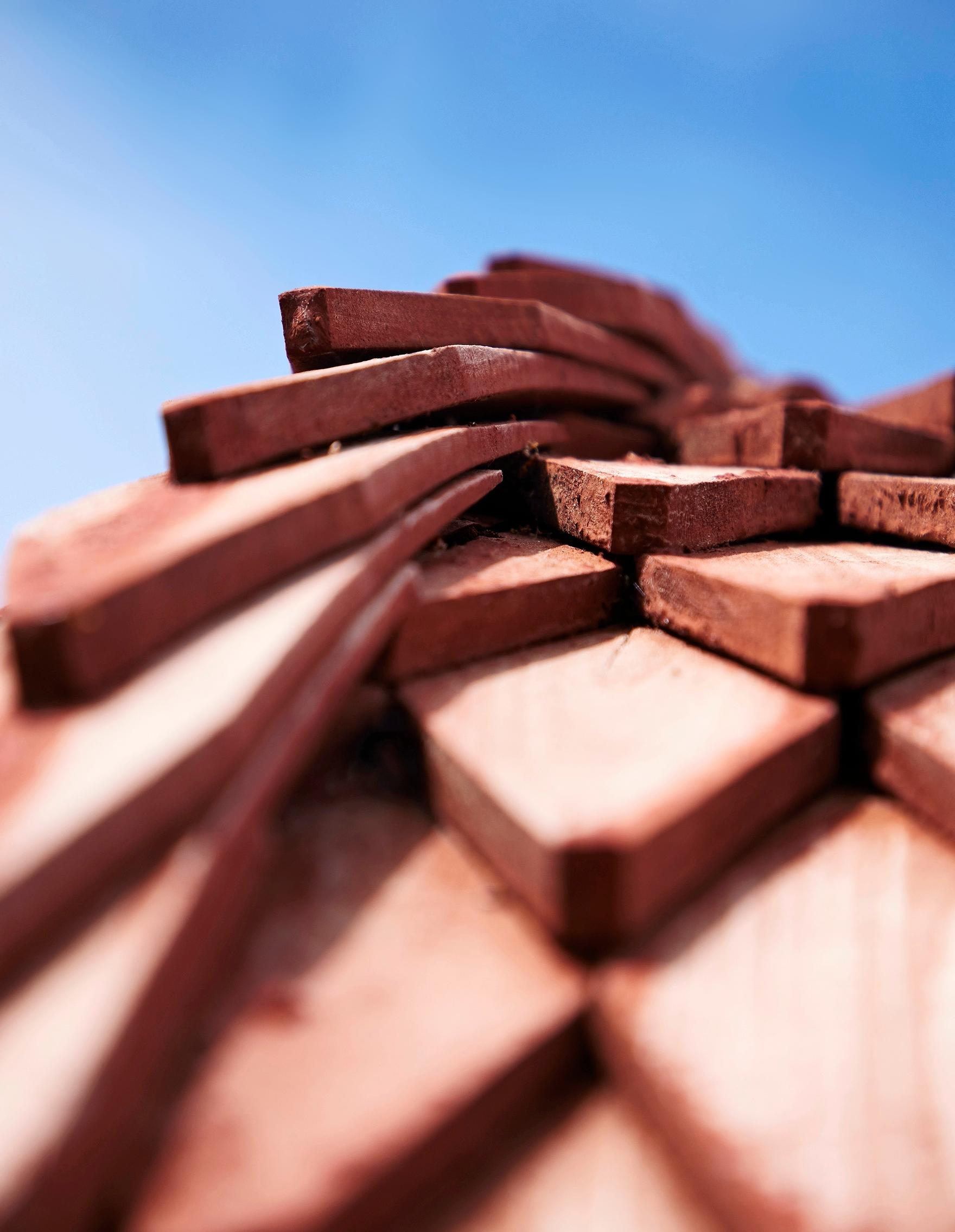 Ruokasalin seinä on tehty päreistä. Emilin tekemästä asetelmasta muodostuu sydän sekä kaksi hakaristiä. Ikivanhat symbolit päätyivät seinälle kolmisenkymmentä vuotta ennen natsien hirmuvaltaa.