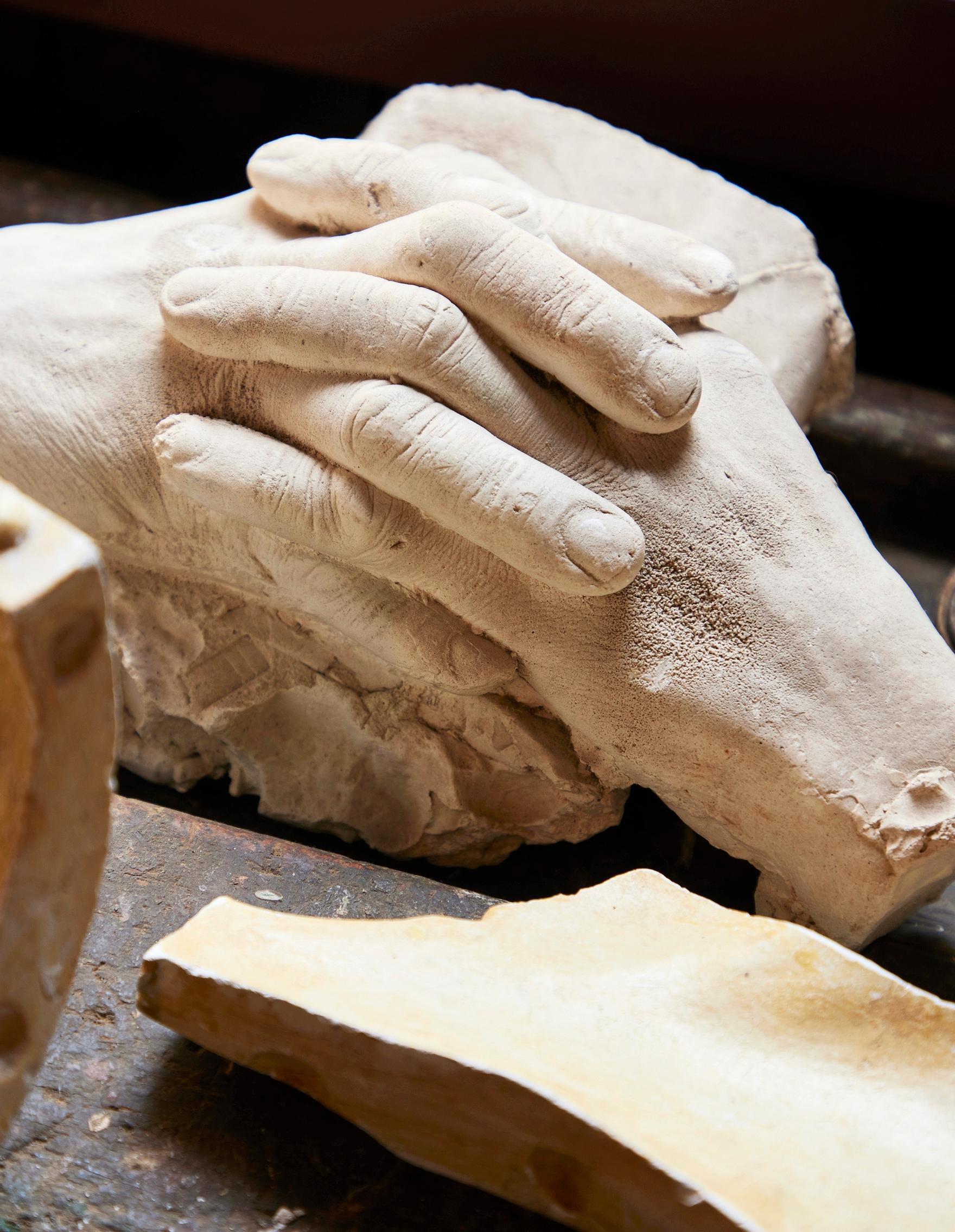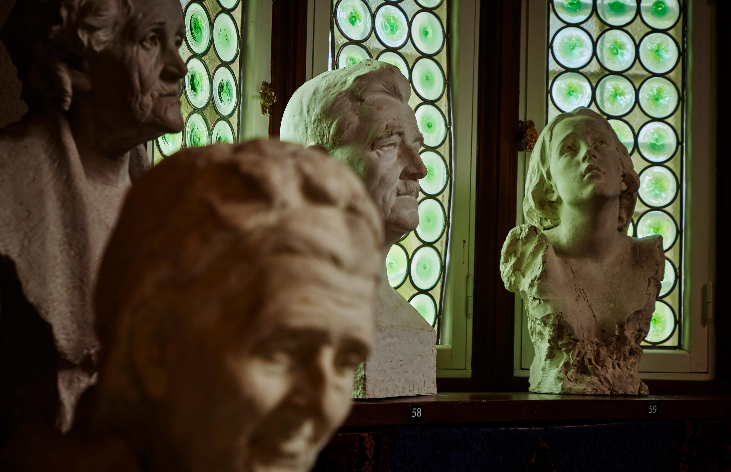 Ateljeen perällä on patsasgalleria kuvanveistäjän sukulaisista.