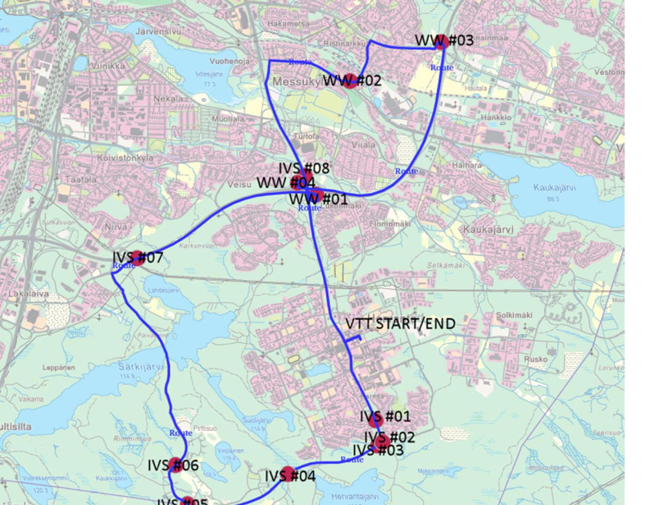 Testireitti kiertelee Tampereella, tukikohtana on VTT Hervannassa.