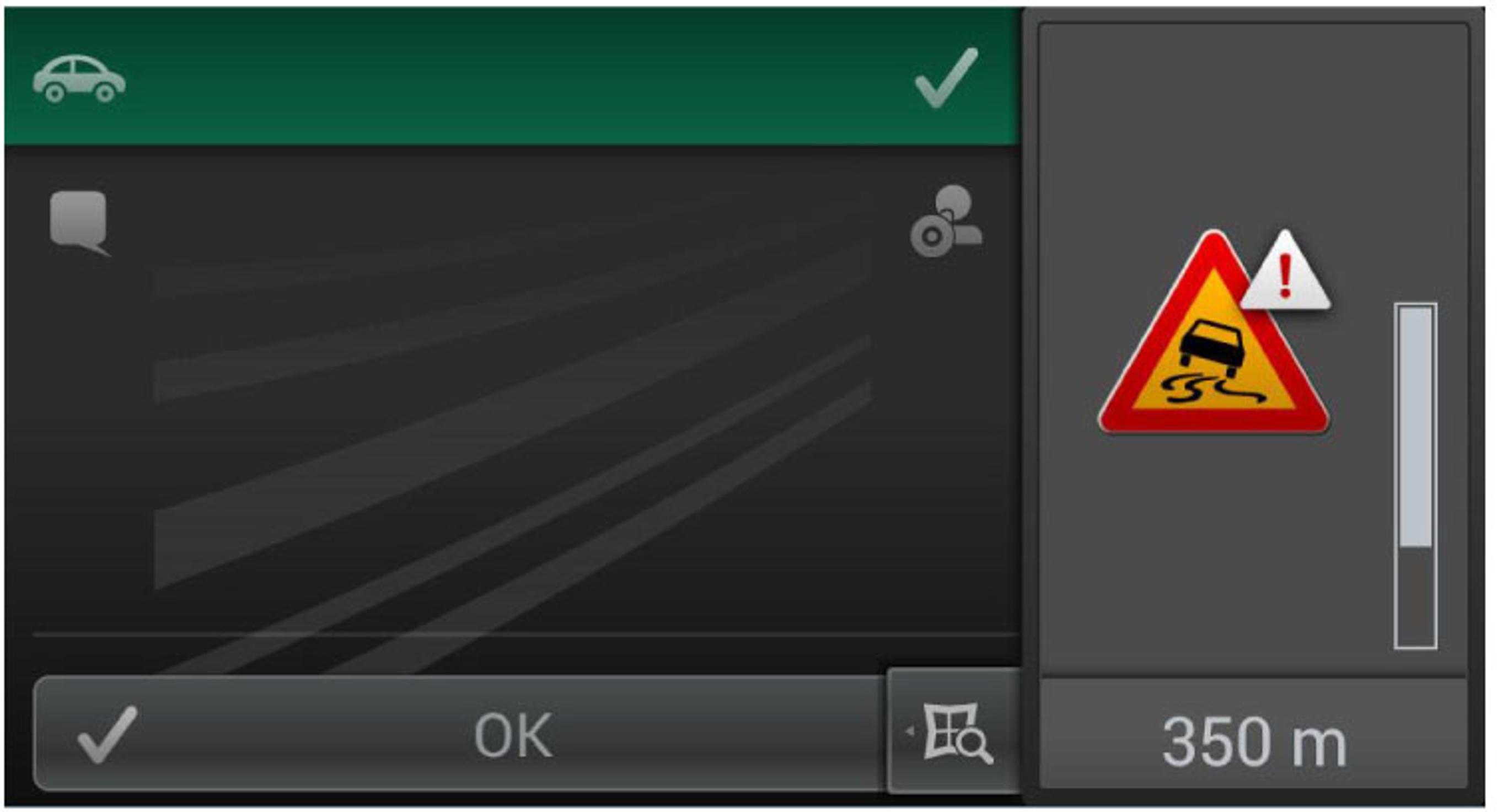 Autojen järjestelmät (ABS, ESC) havaitsevat tiellä olevan liukkauden. Tieto siirtyy autoista tien varressa olevien tukiasemien kautta muihin autoihin.