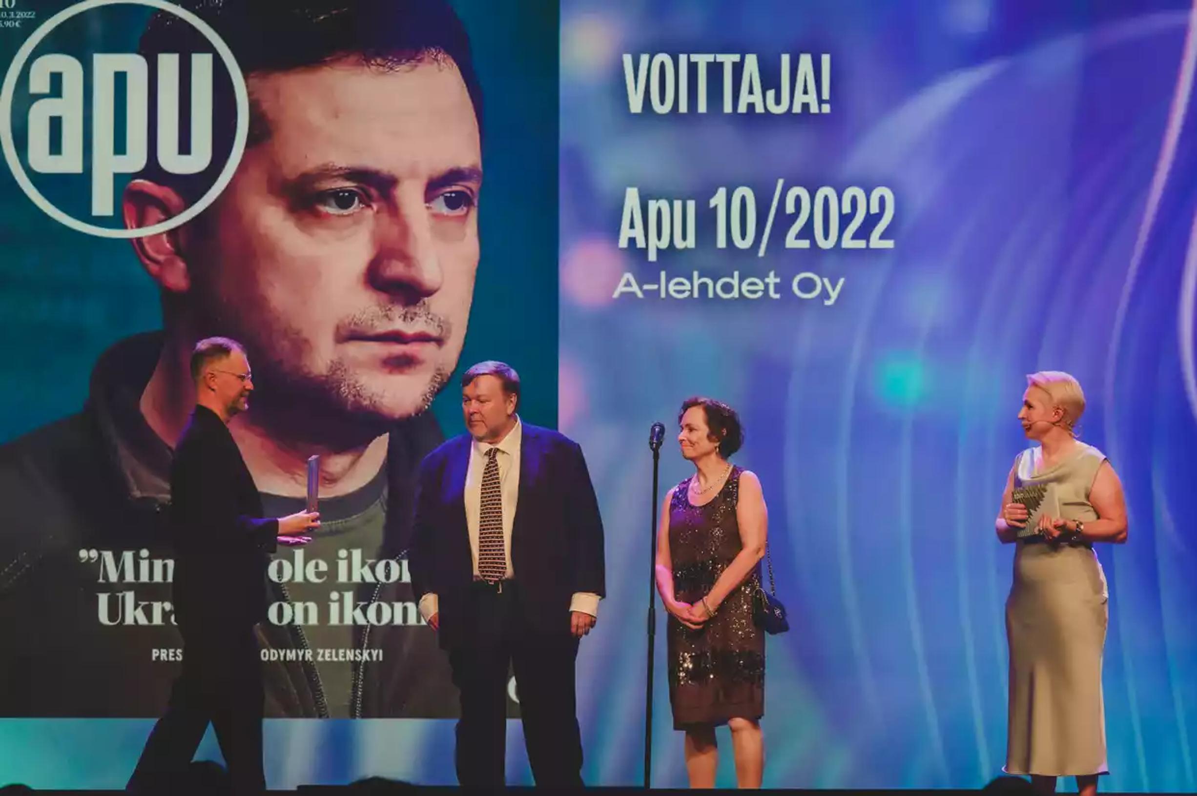 Avun kansi maaliskuulta 2022 voitti Vuoden irtonumero -sarjan. Kannessa on kasvokuva Ukrainan presidentistä Volodymyr Zelenskyistä.