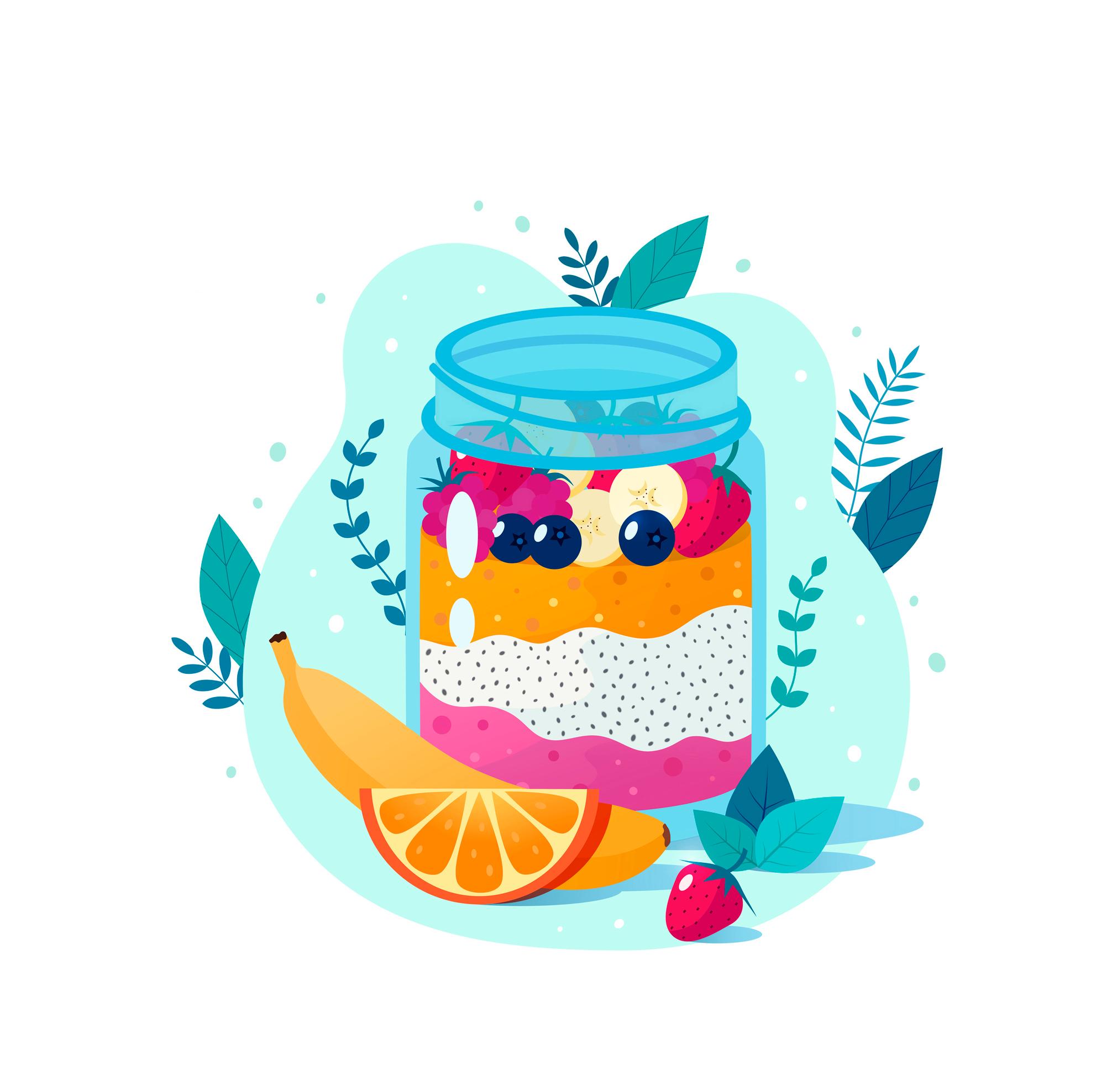 Sekoita chian siemenet mehukeittoon ja jaa annoslaseihin. Laita jääkaappiin 10 minuutiksi. Sekoita uudestaan ja anna tekeytyä vielä ainakin 20 minuuttia. Ota annokset pois jääkaapista ja sekoita vielä kerran.